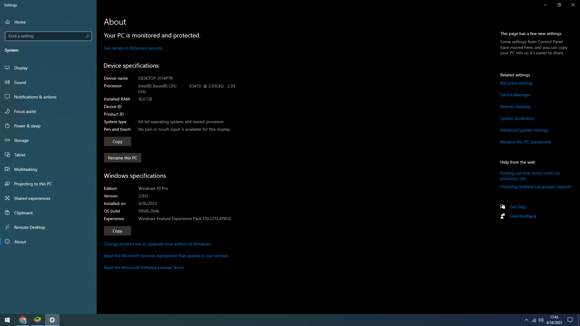Untuk Device Specifications kalian hanya dapat melihat, nama device, processor yang di gunakan, Ram yang terpasang(terbaca pada system).